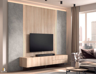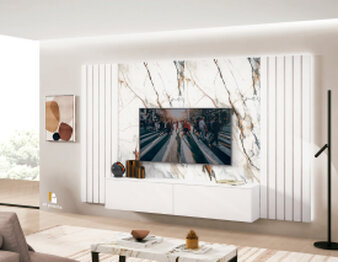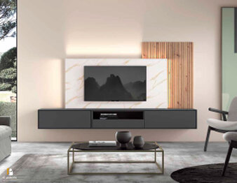 04 Salon Moderno con palilleria, tv suspendido y trasra marmol - Muebles El Puente Gálvez ( Toledo)