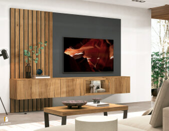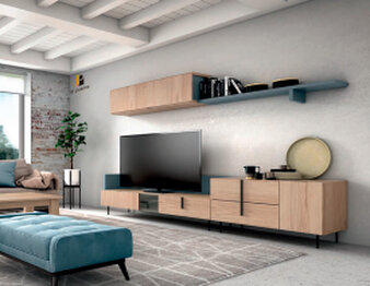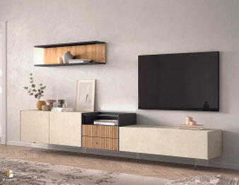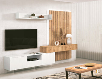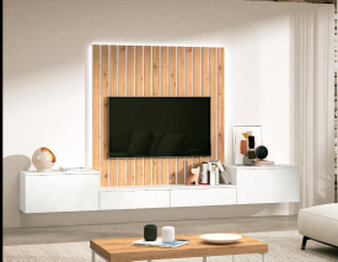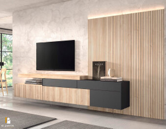 32 Salon Moderno composicion tv suspendido con palilleria- Muebles El Puente Gálvez ( Toledo)