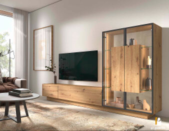 02 Salon Moderno con vitrina abierta y tv - Muebles El Puente Gálvez ( Toledo)
