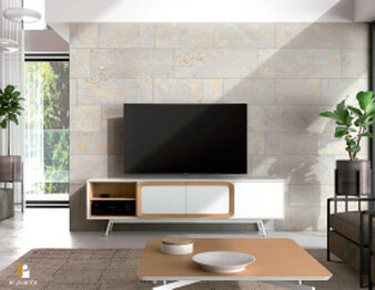 02 Salon Moderno con palilleria y detalle piedra - Muebles El Puente Gálvez ( Toledo)