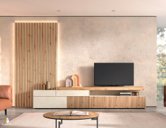 02 Salon Moderno con palilleria y detalle piedra - Muebles El Puente Gálvez ( Toledo)